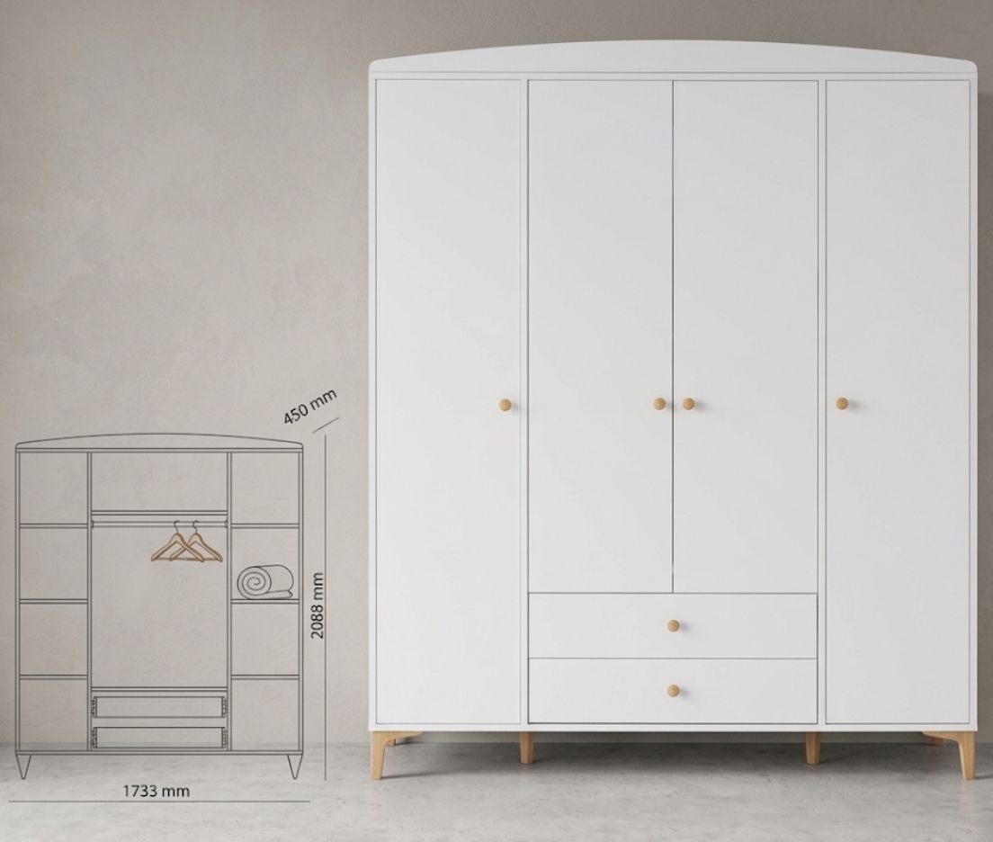 * Oval Üst Taç: Gardırobun üst kısmındaki yumuşak kavis, keskin hatları yumuşatarak mobilyaya modern ve zarif bir kimlik kazandırır.